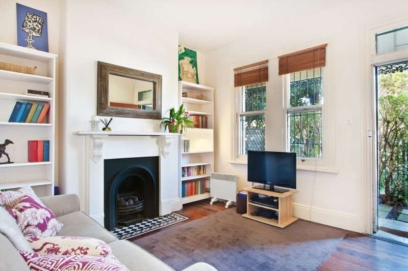 Quietly positioned one bedroom terrace offers an attractive living space with polished timber floors and a feature fireplace. Bedroom with a large built…More » Terrace